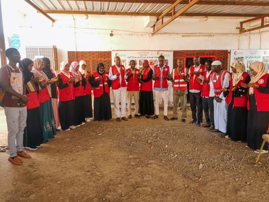 عدد من المتطوعين والموظفين بالهلال الأحمر السوداني القضارف يقفون حدادا لمقتل منسوبيهم بمدينة بارا