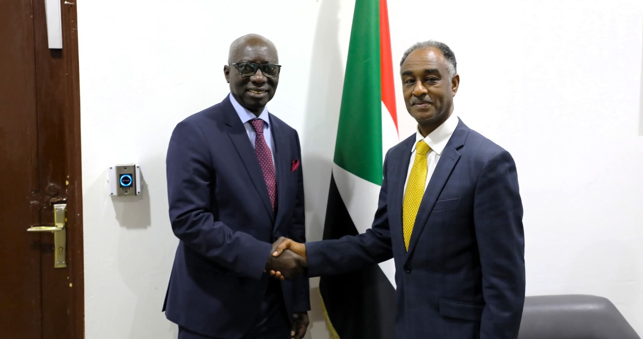 استقبل السفير معاوية عثمان خالد، وكيل وزارة الخارجية والتعاون الدولي، اليوم المبعوث الخاص للاتحاد الأفريقي لمنع الإبادة الجماعية أداما دينق، الذي يزور البلاد حالياً.