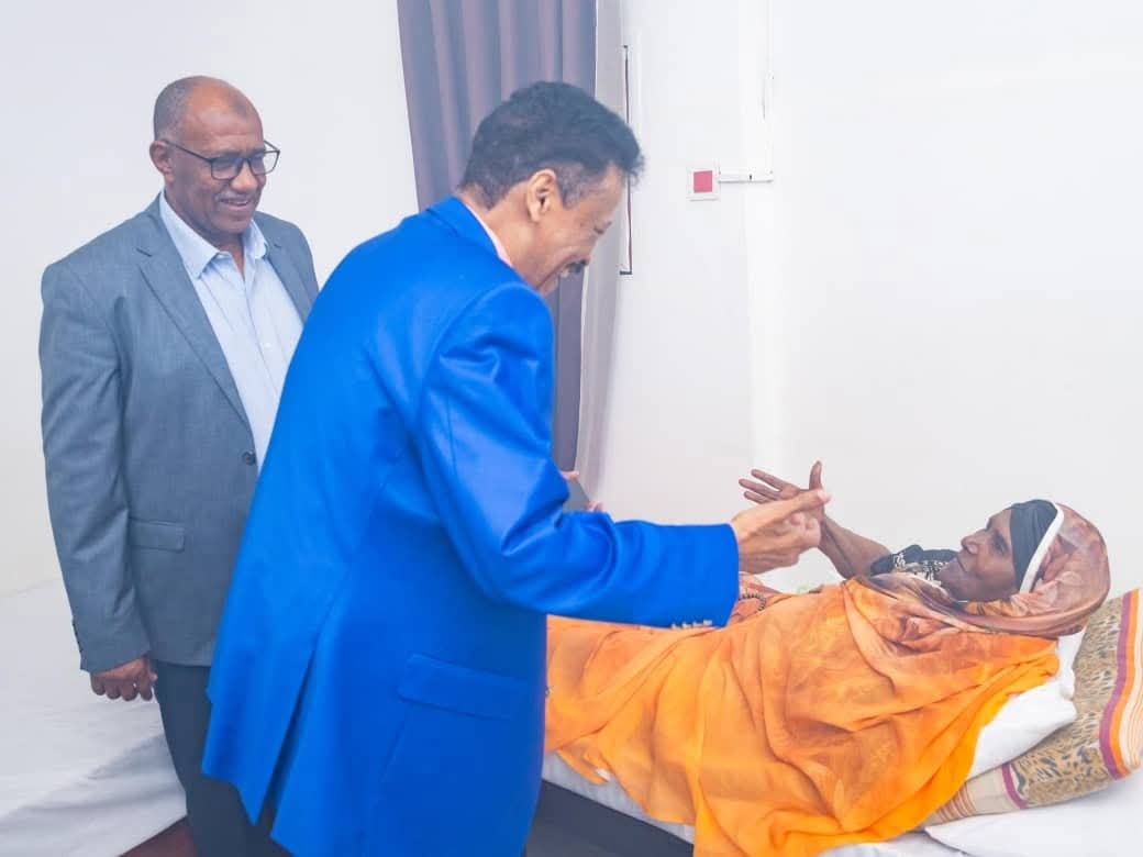 خلال زيارتهم اليوم للأستاذة القديرة فائزة عمسيب بمقر إقامتها ببورتسودان وذلك لتفقد أوضاعها والإطمئنان على حالتها الصحية وذلك في إطار إهتمام الدولة بالرموز الفنية والثقافية.