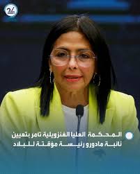 أعلنت المحكمة الدستورية العليا في فنزويلا اليوم تكليف ديلسي رودريغيز نائبة الرئيس نيكولاس مادورو الذي اعتقلته وزوجته قوات خاصة أميركية في عملية مباغتة بكراكاس أمس السبت، بتولي الرئاسة مؤقتا.