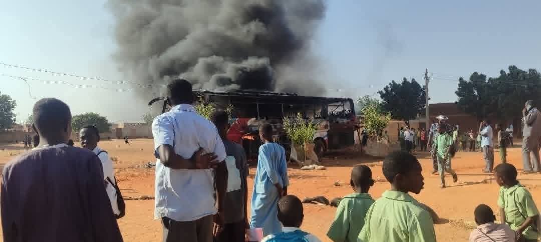 حريق مفاجئ يلتهم باصًا سياحيًا بحي الفاروق في أم روابة
