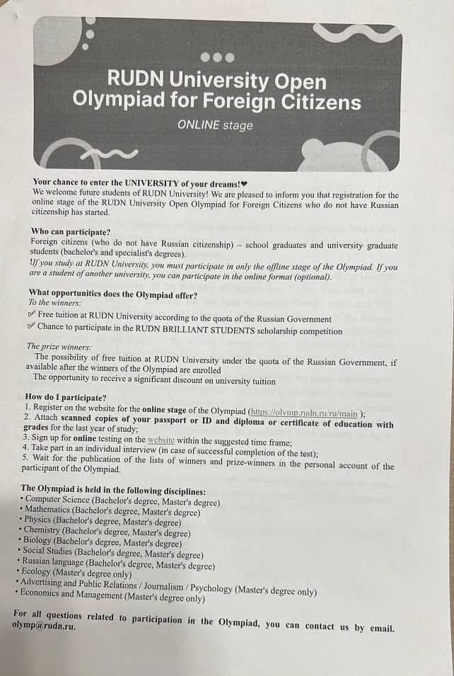 أعلنت سفارة جمهورية السودان في موسكو عن فتح باب التقديم للمنح الدراسية التي تتيحها جامعة الصداقة للطلاب الأجانب، وذلك لمرحلتي البكالوريوس والماجستير في عدد من التخصصات المختلفة.