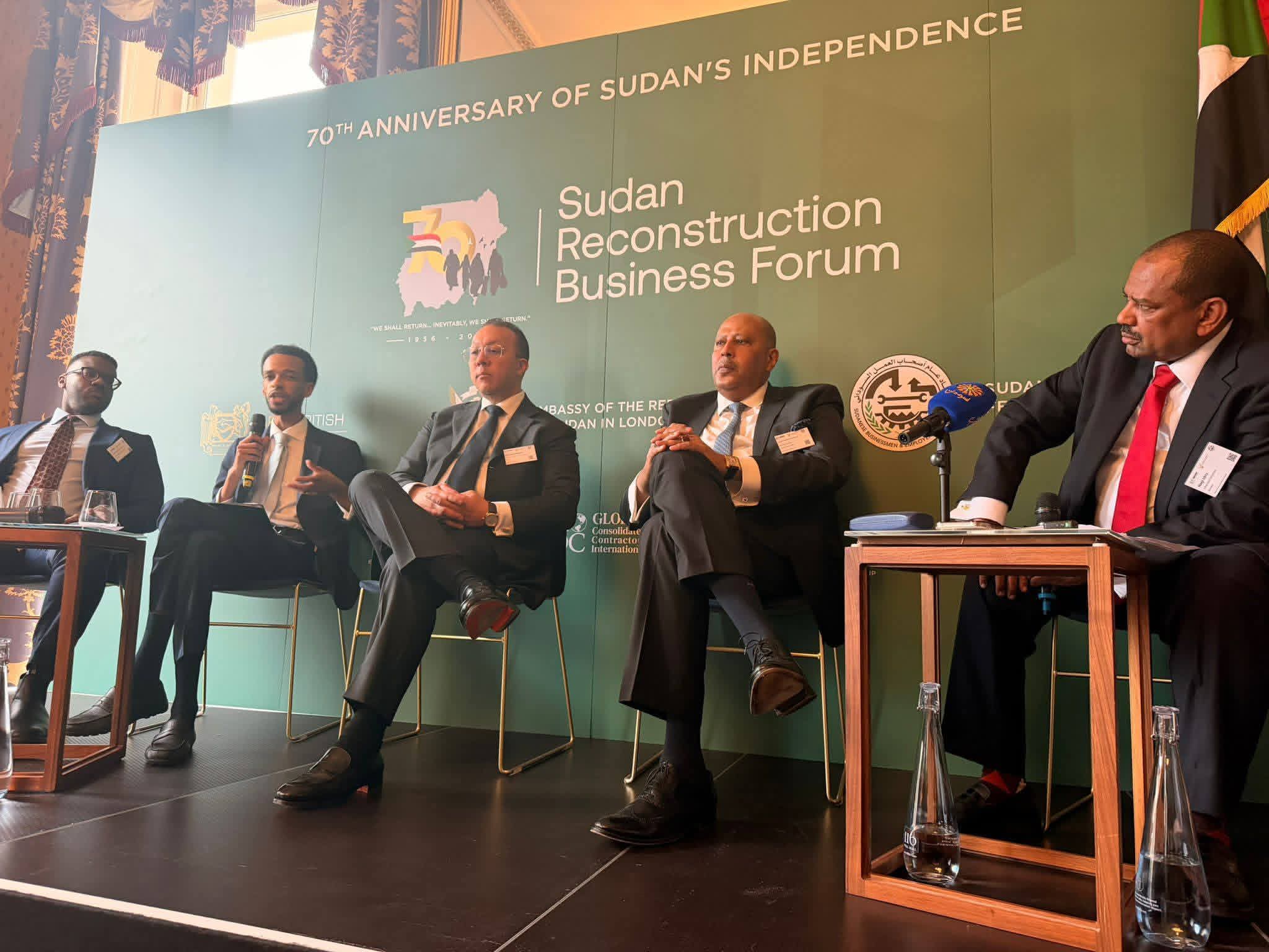نظّمت سفارة السودان بالمملكة المتحدة، بالتعاون مع اتحاد أصحاب العمل السوداني وغرفة التجارة العربية البريطانية، ملتقى اقتصاديًا بالعاصمة البريطانية لندن حول إعادة إعمار السودان، وذلك ضمن احتفالات السفارة بالذكرى السبعين لاستقلال البلاد.