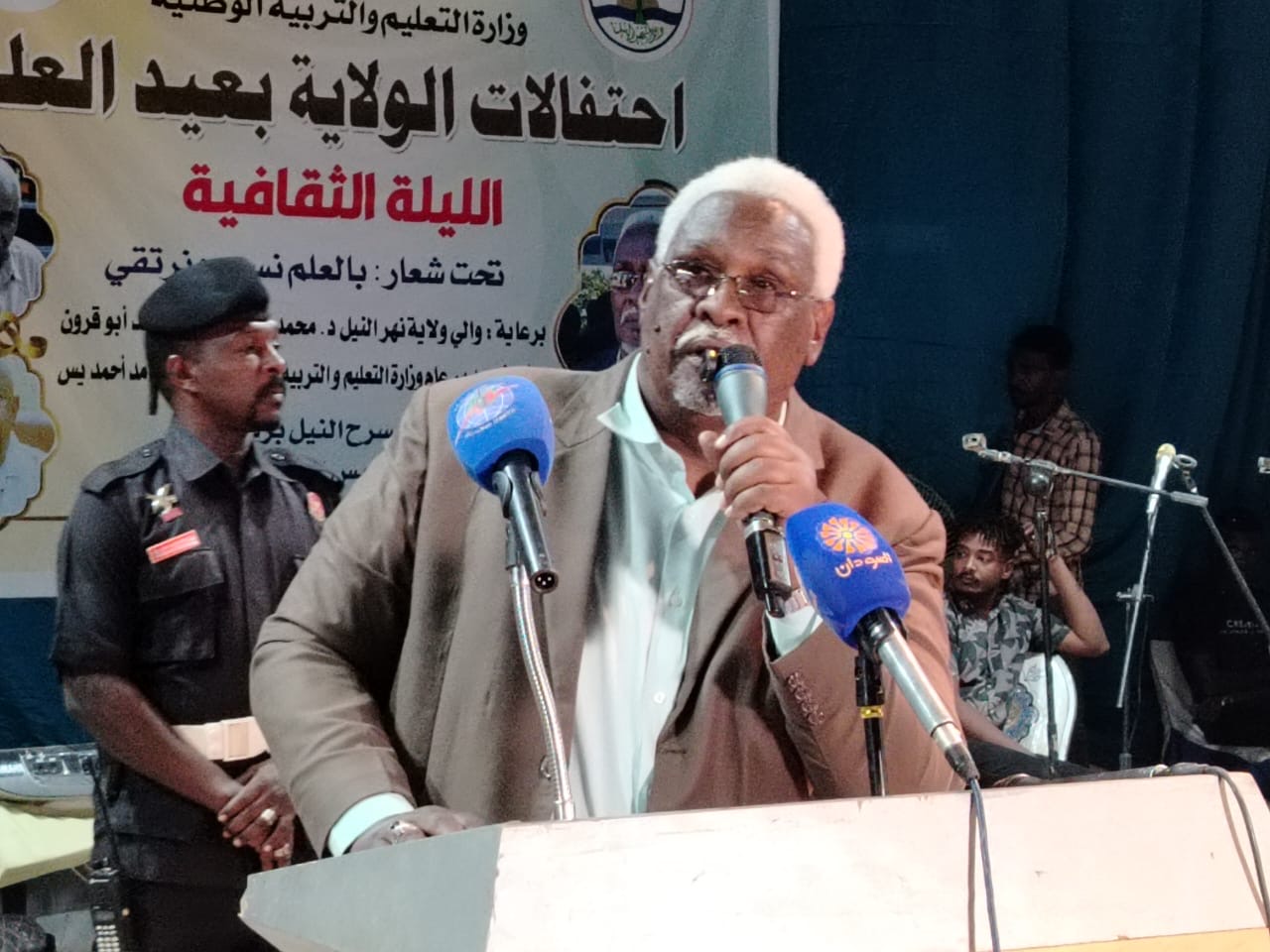 جاء ذلك لدى مخاطبته ختام احتفالات عيد العلم في نسخته الرابعة بمدينة بربر بمسرح النيل، بحضور قيادات حكومية وأمنية وتعليمية وجموع المعلمين والطلاب والأسر.