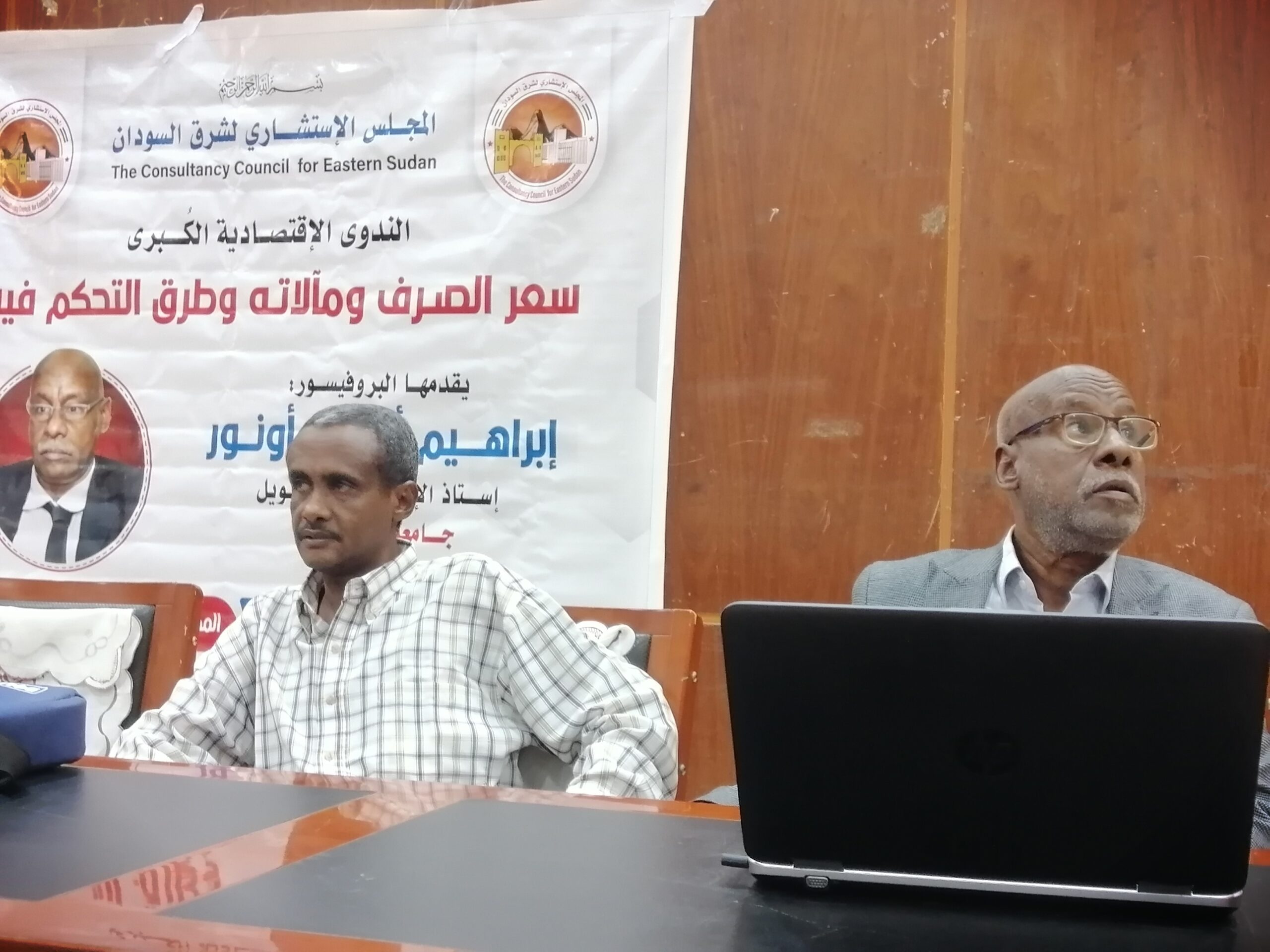 وقال الخبير الاقتصادي واستاذ الاقتصاد والتمويل البروفيسور ابراهيم احمد اونورسعر، في ندوة سعرالصرف ومالاته وطرق التحكم فيه، التي اقامها لمجلس الاستشاري لشرق السودان، اليوم بقاعة أمانة حكومة ولاية البحر الأحمر ببورتسودان، انه يخشي انهيار الدولة في ظل التوسع النقدي من العملات المزورة في الأسواق، وأن الانهيار الاقتصادي سيبدأ قبل الانهيار العسكري، لافتاً إلى ان المشكلة في بنك السودان المركزي وتباطؤه في عدم اتخاذ إجراءات عاجلة في تغيير العملات المزورة المتواجدة في أيدي المليشيات وتشتري به المنتجات الموجودة في الأسواق ، وأنه لابد من تفعيل دور البنك في إيقاف التضخم والرقابة على المصارف واسعار الدولار في السوق السوداء والبنوك التجارية ، واضاف ان الدولار كان يتحكم في سعره سابقاً، من قبل خمس تجار ببرج البركة في الخرطوم ويحددون سعر الدولار، وللأسف بعد الحرب اتجه التجار للعمل في مصر وجذب تحويلات المغتربين السودانيين الي مصر والتي تبلغ أكثر من اربع مليار دولار في شكل تحويلات للأسر والعلاج والتعليم، وتابع بالقول أن شركات الصادر تجنب حصائل صادرات السودان من المحاصيل النقدية من السمسم والفول السوداني، إلى أكثر من 85٪ منها لاتعود الحصائل للبلاد، واردف بالقول أن كمية الذهب المهرب تجاوز ال85٪ من جملة التعدين الاهلي والذي قدر إنتاج السودان ب200طن في العام 2022ك،، ويتم تهريبه للخارج والدولة لاتستفيد منه، ولا تعود اي عوائد للدولة.