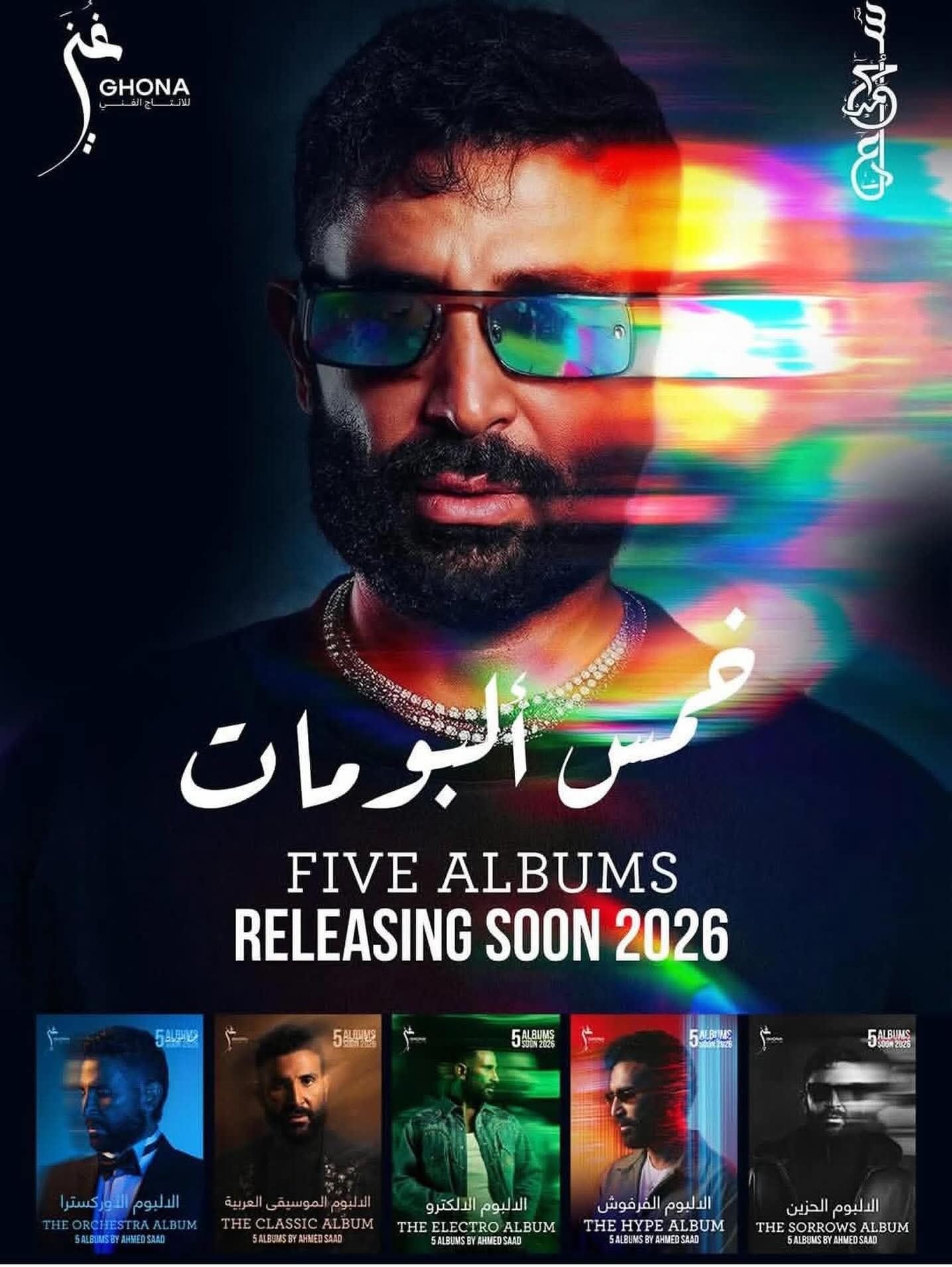 أعلن الفنان المصري أحمد سعد عن طرح خمسة ألبومات غنائية دفعة واحدة، في خطوة تُعد الأولى من نوعها في سوق المزيكا المصري والعربي.