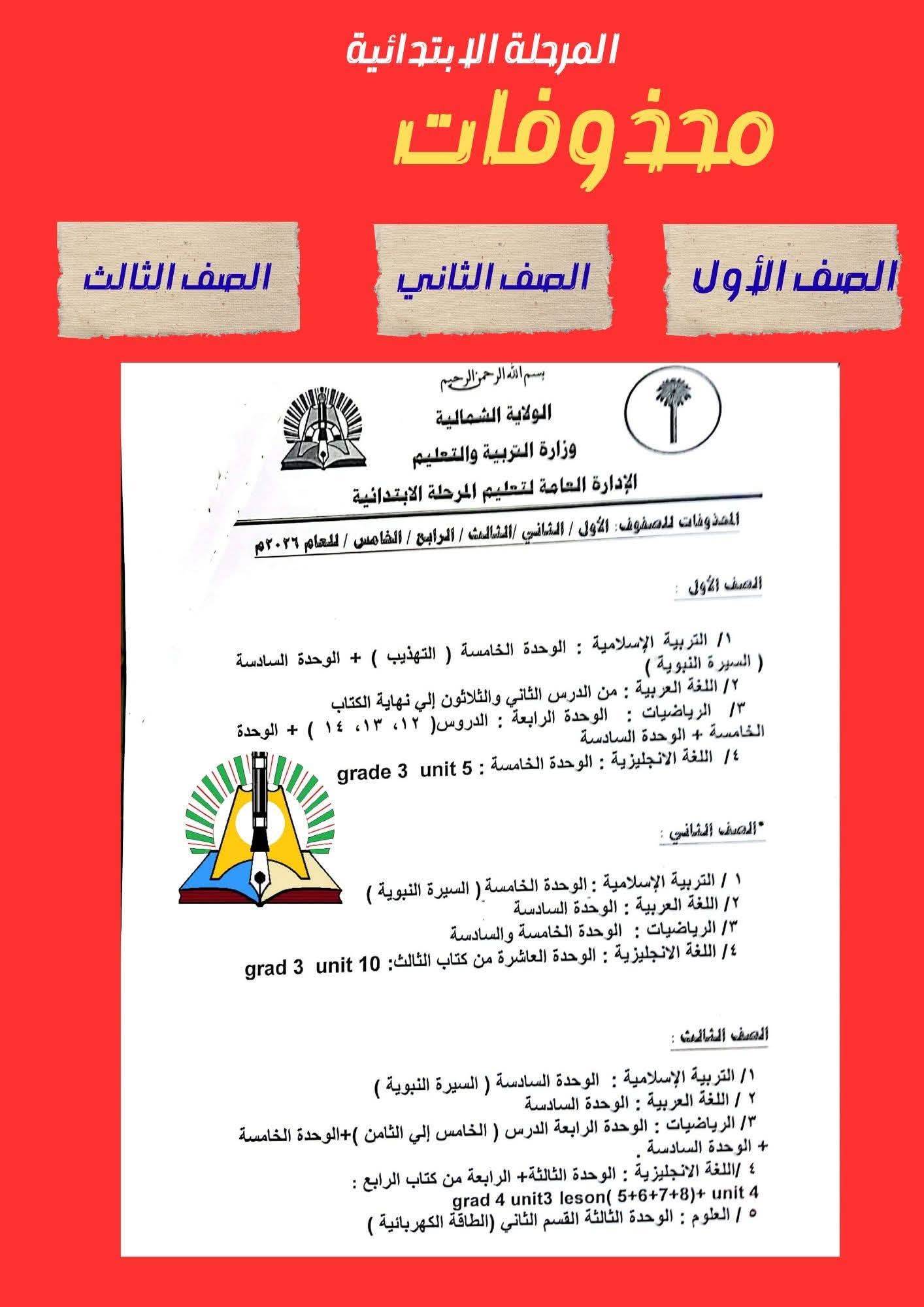 إعلان رسمي بمحذوفات مناهج الابتدائي بالولاية الشمالية