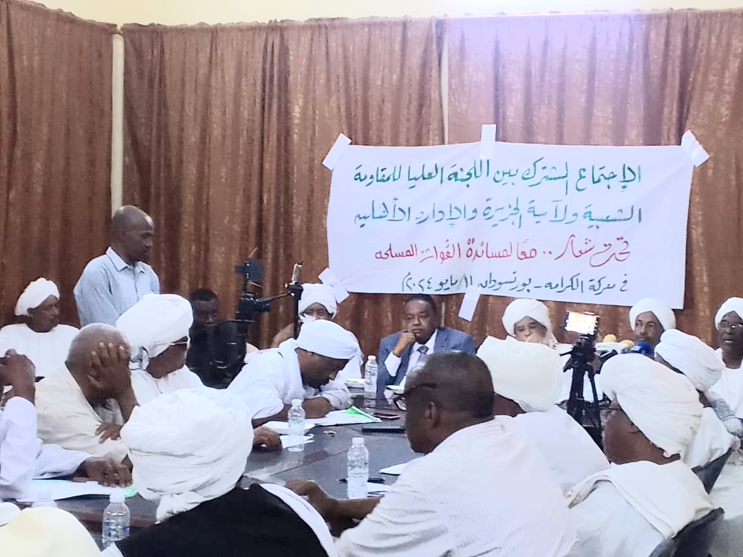 وجه الإجتماع المشترك بين اللجنة العليا للمقاومة الشعبية ولاية الجزي والإدارة الاهلية أصابع الإتهام للقوى الموقعة على ميثاق الفترة الإنتقالية بإقصاء قادة الإدارة الاهلية والعديد من الفاعلين من توقيع الميثاق بالقاهرة داعيا لضرورة الوحدة ومساندة القوات النظامية