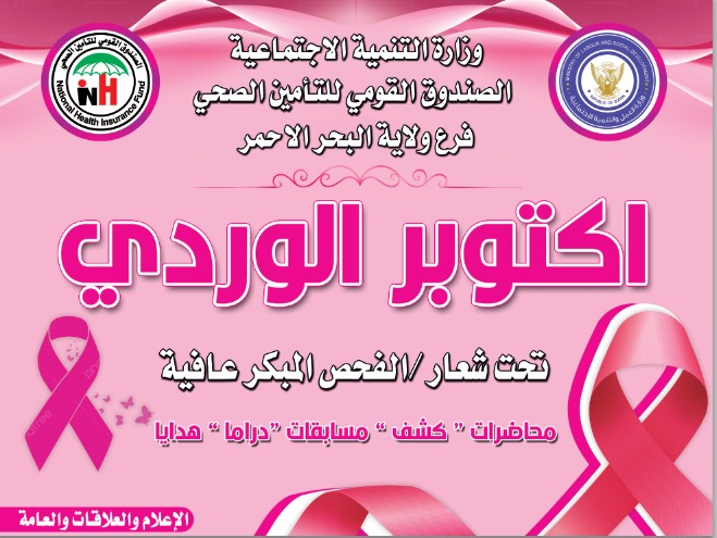 أعلن المدير العام للصندوق القومي للتأمين الصحي الدكتور فاروق نورالدائم احتفال الصندوق يوم غد الخميس بفعالية أكتوبر الوردي (الاحتفال باليوم العالمي للتوعية بسرطان الثدي) على مستوى كل ولايات السودان.