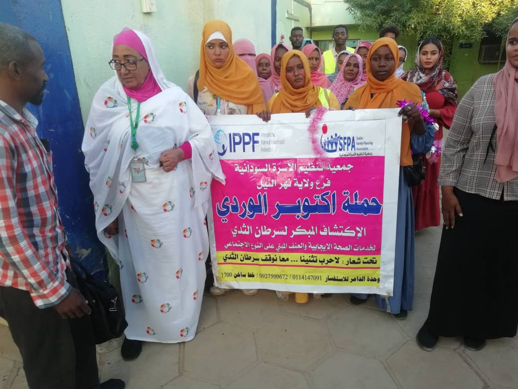 احتفلت جمعية تنظيم الاسرة فرع ولاية نهر النيل بختام فعاليات اكتوبر الوردي بتشريف وزير الصحة بالولاية ولفيف من اطياف المجتمع والذي ياتي تحت شعار لا حرب تثنينا معا نوقف سرطان الثدي بمركز صحة الأسرة بمدينة عطبرة يوم الإثنين