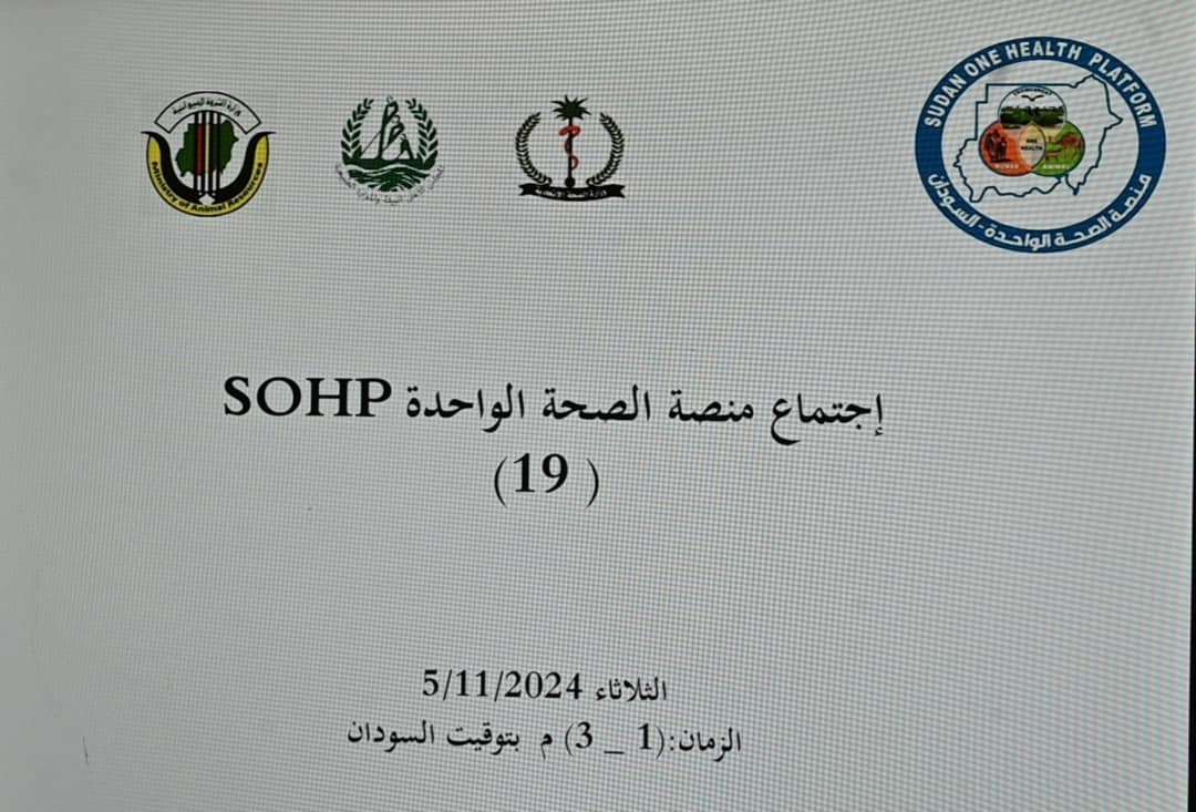 وقال رئيس لجنة خبراء منصة الصحة الواحدة بالسودان د. بابكر المقبول في تصريح صحفي عقب الاجتماع، إن الاجتماع شارك فيه معظم اعضاء منصة الصحة الواحدة من وزارتي الصحة، الثروة الحيوانية، ومجموعة من المنظمات الدولية، على راسها الصحة العالمية، الفاو، أطباء بيطريون بلاحدود السودانية ومجموعة زودياك، وممثلين لجامعات ومراكز بحثية، والذي ناقش الوضع الوبائي العام بالسودان، بالتركيز على وبائي الكوليرا والضنك، بجانب اوبئة ذات خصوصية، ومنها السعر والذي انتشر في بعض الولايات ضمن الآثار السالبة للحرب الجارية، فضلا عن مهدد عالمي آخر منتشر في الدول الأفريقية من حولنا جدري القرود.