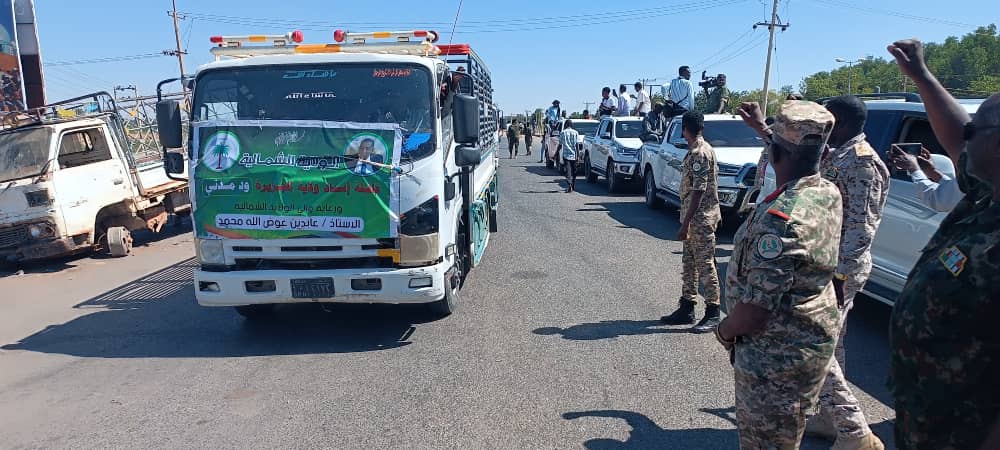 وصلت لحاضرة ولاية الجزيرة مدينة ودمدني اليوم قافلة الدعم والإسناد المقدمة من ولايات القضارف وكسلا ونهر النيل والشمالية لولاية الجزيرة بعدد (40) شاحنة و تحتوي القافلة علي المواد الغذائية والأدوية والمعدات الطبية وذلك برعاية وإشراف الفريق ركن مهندس مستشار إبراهيم جابر عضو مجلس السيادة وممثل الفرقة الثانية مشاه العقيد ركن مهندس عبدالعال حسن وكان في استقبال القافلة بقيادة الفرقة الأولي مشاه بمدني الأستاذ مرتضي البيلي أمين عام الحكومة ممثل والي الجزيرة واللواء ركن عوض الكريم علي سعيد قائد الفرقة الأولي مشاه بمدني وعدد من القيادات العسكرية والتنفيذيين