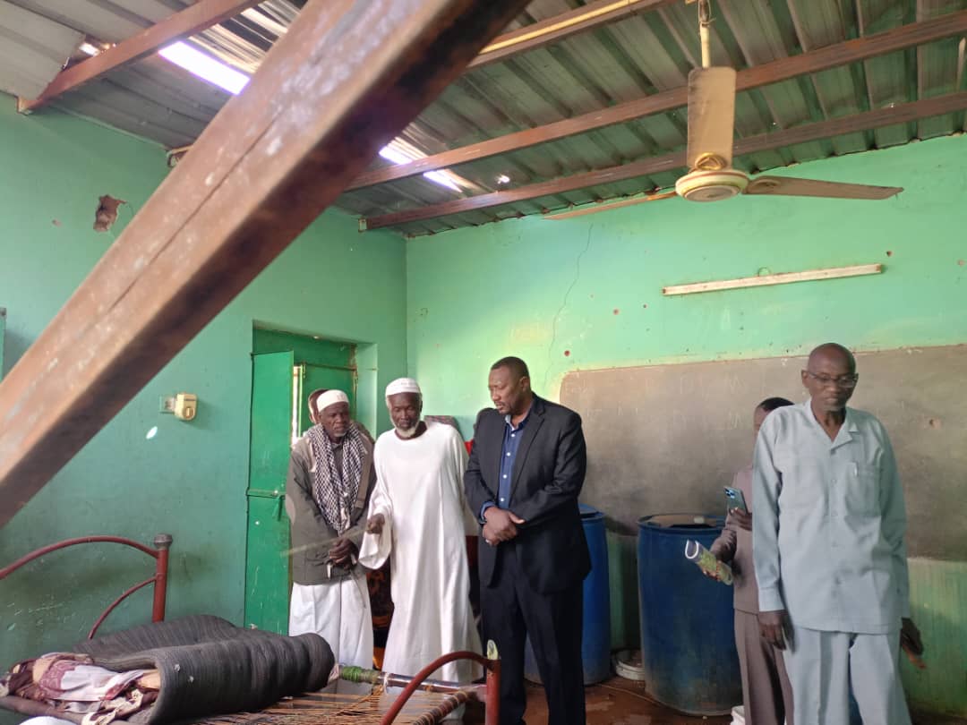 تفقد الأستاذ صديق حسن فريني مدير عام وزارة التنمية الإجتماعية يرافقه مدير مراكز الإيواء محمد بشر مركز إيواء الثورة الحارة (11) بمدرسة الصديقة بت الصديق )بعد أن قامت المليشيا بقصفه وبداخله عدد كبير من الوافدين واستشهد علي إثره (4)من الشباب بالإضافة إلي جرح( 3)أطفال