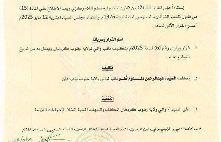 قالت الحركة الشعبية لتحرير السودان-شمال “الجبهة الثورية” ان قرار تكليف عبدالرحمن دلدوم شلو، بمنصب نائب لحاكم ولاية جنوب كردفان، يعد خطوة جديدة نحو إرساء قواعد السلام وتقوية نظام حكم مستقر يحقق التنمية العادلة والمستدامة للجميع.
