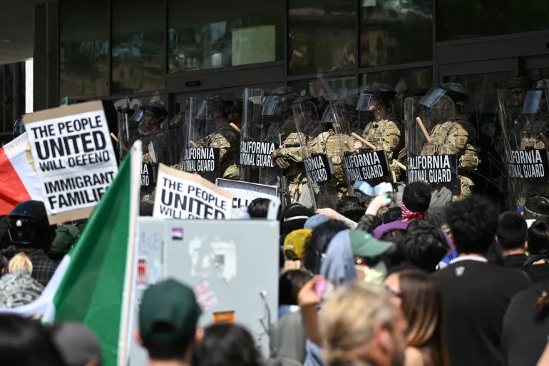 في المقابل، ندّد حاكم كاليفورنيا الديمقراطي غافين نيوسوم بشدة بقرار نشر عناصر المارينز في لوس أنجلوس. وكتب نيوسوم في منشور على منصة إكس إنّ “مشاة البحرية الأميركية خدموا بشرف عبر حروب متعددة دفاعا عن الديمقراطية، ولا ينبغي نشرهم على الأراضي الأميركية لمواجهة مواطنيهم لتحقيق خيال مضطرب لرئيس دكتاتوري”.