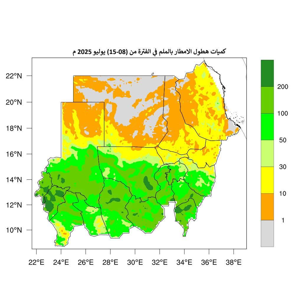 توقعات الطقس الأسبوعية في السودان للفترة من 8 إلى 15 يوليو 2025م