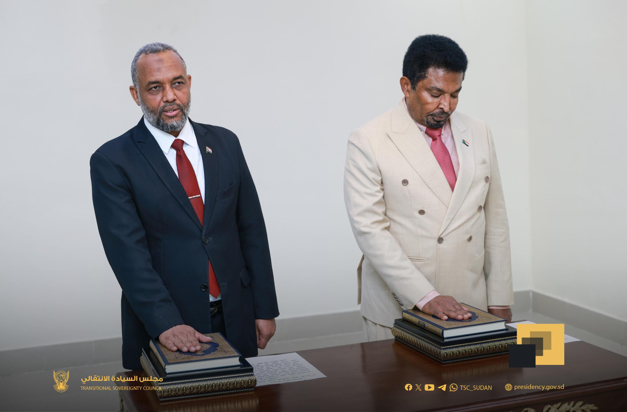 أدى القسم أمام السيد رئيس مجلس السيادة الانتقالي، الفريق أول الركن عبدالفتاح البرهان، اليوم، وزيرا الثروة الحيوانية والصحة د.أحمد التيجاني عبدالرحيم ود.هيثم محمد إبراهيم، وذلك بحضور رئيس الوزراء د.كامل إدريس وممثل رئيس القضاء والأمين العام لمجلس السيادة الفريق ركن دكتور محمد الغالي علي يوسف.