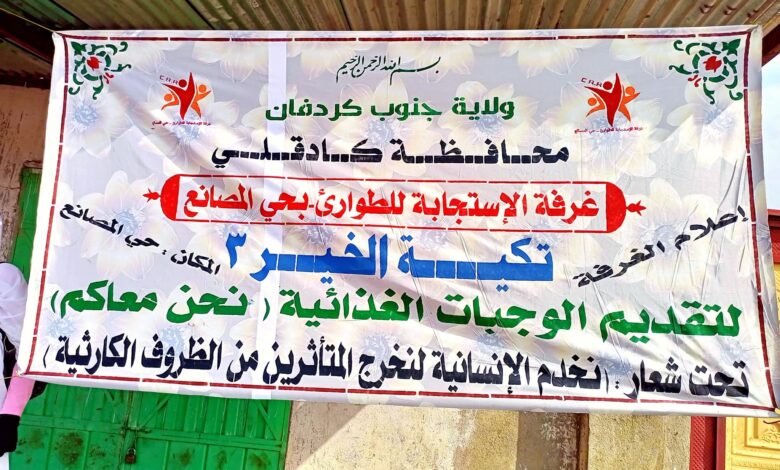 دشنت اليوم الأحد بولاية جنوب كردفان، بمحافظة كادقلي، غرفة الاستجابة للطوارئ بحي المصانع، برنامج “تكية الخير 3” لتقديم الوجبات الغذائية للأسر الضعيفة والمتعففة والأكثر حاجة في حي المصانع والأحياء المجاورة، بما في ذلك حي الأمير، كليمو شرق (السلخانة) وحي النسيج.
