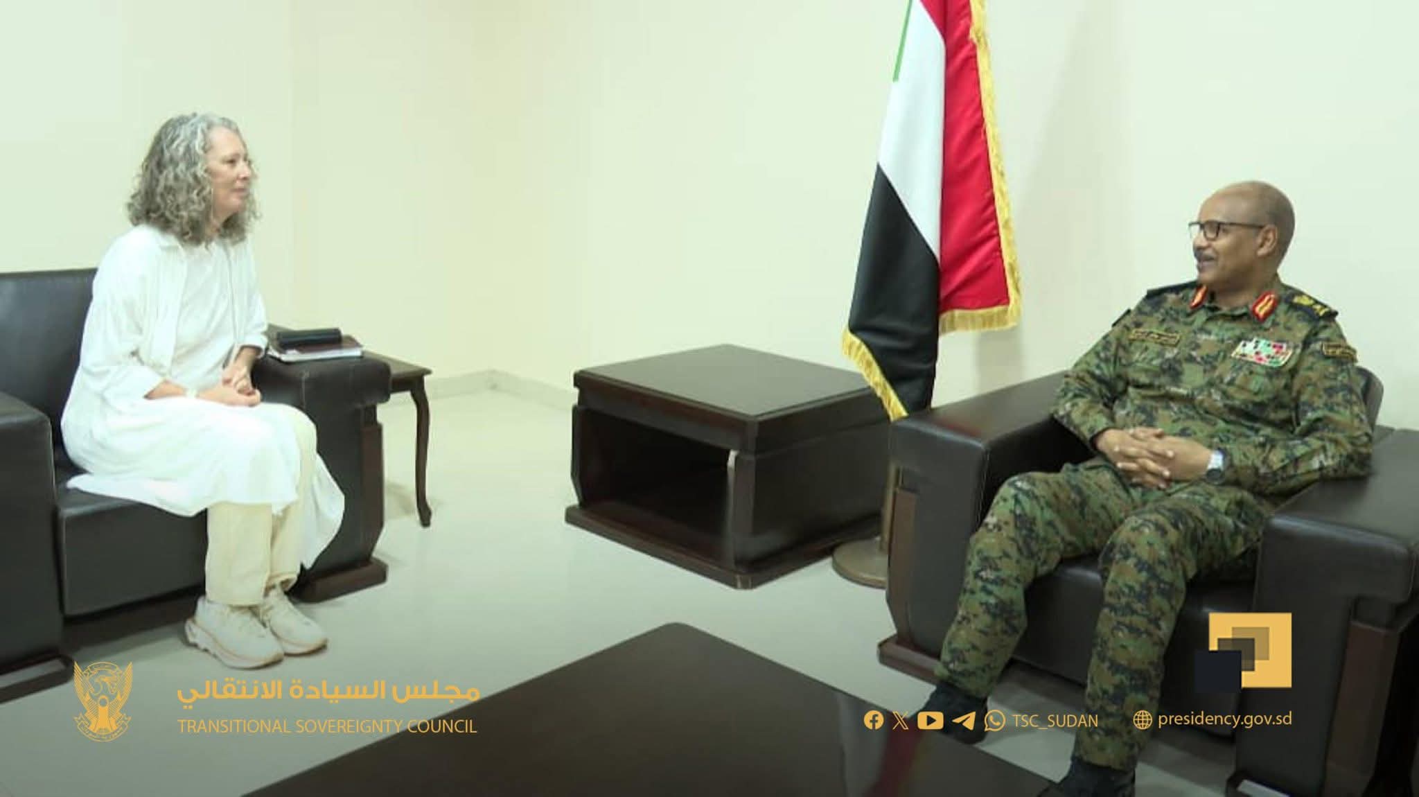 التقى عضو مجلس السيادة الانتقالي ومساعد القائد العام الفريق مهندس إبراهيم جابر إبراهيم، اليوم بالخرطوم، المنسقة المقيمة لبرنامج الأمم المتحدة في السودان السيدة دينيز براون.