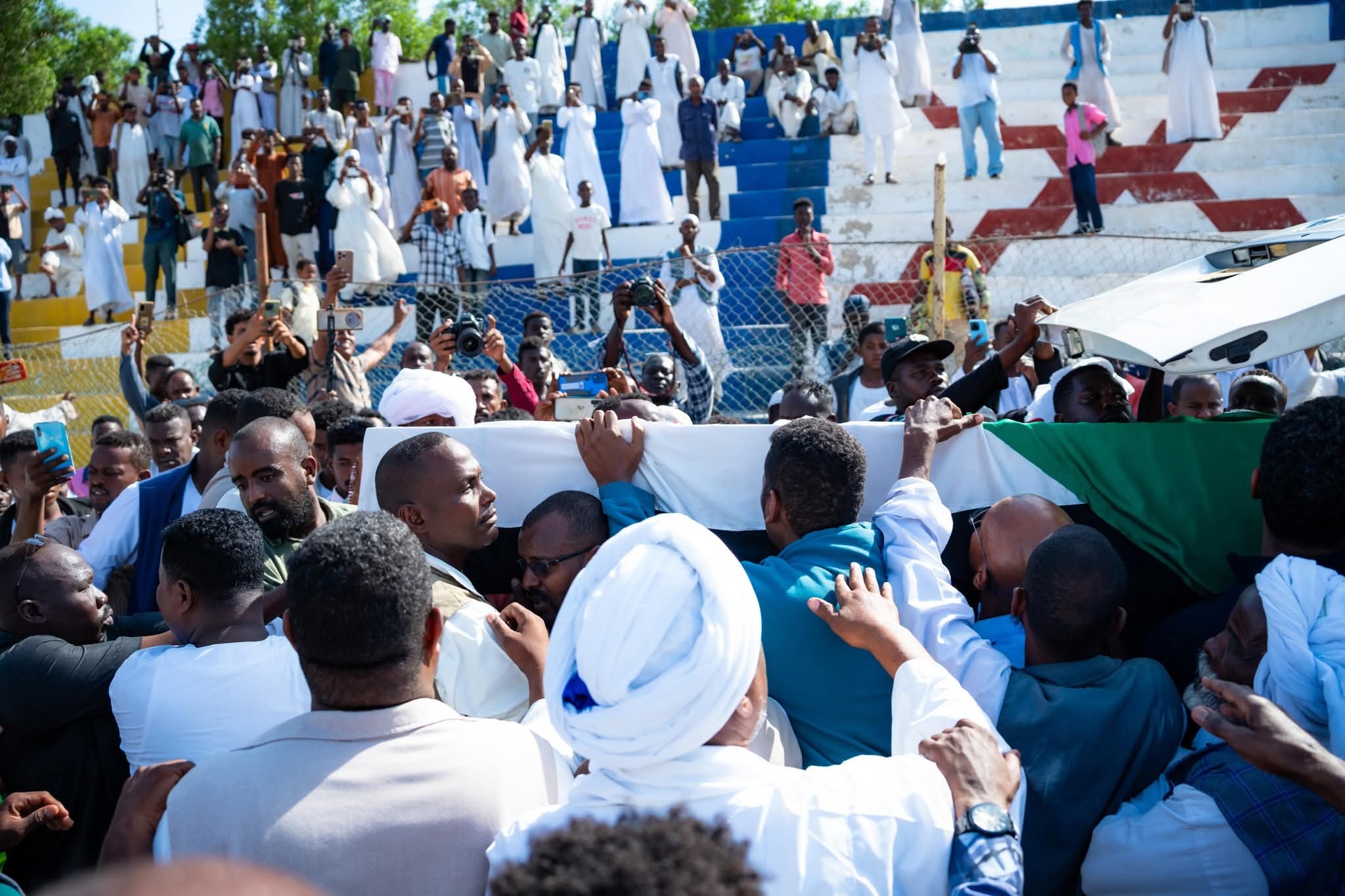 وقد شيعت جماهير غفيرة جثمان الفقيد محمد طاهر إيلا اليوم ، بعد أن أداء صلاة الجنازة عليه في استاد بورتسودان، بحضور الجماهير الكبيرة من سياسيين وتنفيذيين وقادة مجتمع مدني ولفيف من معارف الفقيد في السودان.”