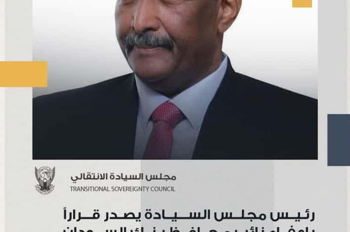 ووجّه البرهان في قراره الجهات المختصة باتخاذ الإجراءات اللازمة لوضع القرار موضع التنفيذ الفوري.