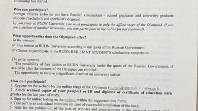 متابعات: ريام نيوز أعلنت سفارة جمهورية السودان في موسكو عن فتح باب التقديم للمنح الدراسية التي تتيحها جامعة الصداقة للطلاب…