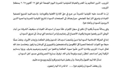 متابعات : ريام نيوز أدانت الحركة الإسلامية السودانية، اليوم الجمعة، الهجوم الذي شنه عناصر مليشيا الدعم السريع على قادة الإدارة…