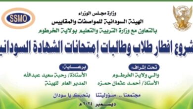 امدرمان:هيثم موسى أعلنت الهيئة السودانية للمواصفات والمقاييس عن برنامج إسناد مجتمعي بالتعاون مع وزارة التربية والتعليم بولاية الخرطوم بتنفيذ مشروع…