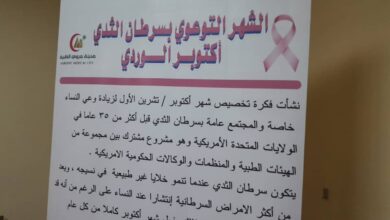 مروي:نضال عثمان احتفلت مدينة مروي الطبية بالشهر التوعوية لداء سرطان الثدي (اكتوبر الوردي )اليوم (الثلاثاء). وأعلن مدير مدينة مروي الطبية…