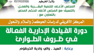 شهدت قاعة المركز الثقافي بمحلية أم درمان انطلاق دورة الإدارة الفعّالة في ظروف الطوارئ، التي ينظمها المركز الأفريقي لدراسات الحوكمة…