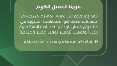 متابعات : ريام نيوز أوضح البنك لعملائه أن المبالغ التي تم خصمها مؤخرًا من بعض الحسابات الاستثمارية تعود إلى المساهمة…